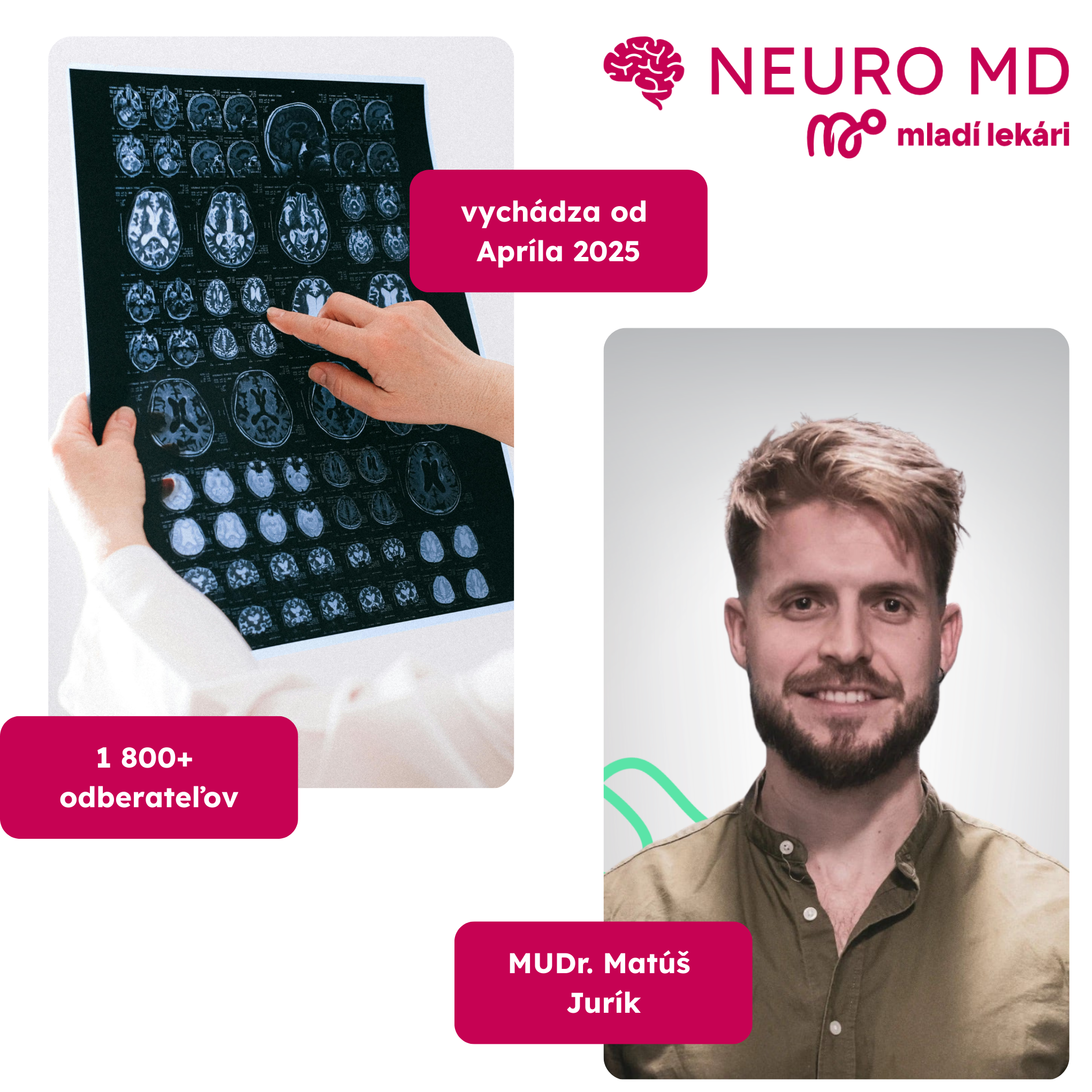 🧠 Neuro MD je odborný mesačný newsletter od Mladí lekári pre lekárov a medičky, ktoré baví neurológia. Píše ho atestovaný neurológ MUDr. Matúš Jurík, ktorý pracuje na neurologickom oddelení v nemocnici Bory v Bratislave.